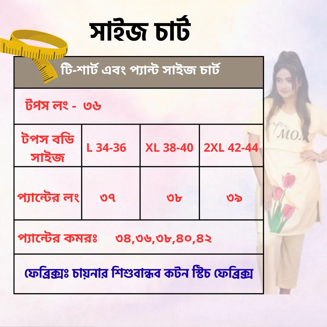 ✅ “Super Mom” প্রিন্ট ও ফুলের ডিজাইন মায়েদের ফ্যাশনেবল লুক দেয় ও কনফিডেন্স বুস্ট করে।